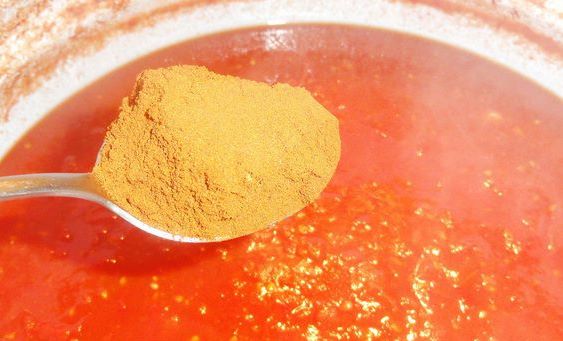 - La mezcla de manzana y tomate se hierve durante al menos media hora, después de lo cual se agregan especias y hierbas.