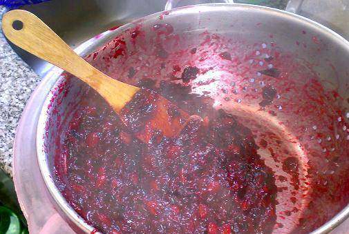 - Ponemos a hervir las frutas picadas añadiendo agua. Tan pronto como el contenido hierva, reduzca el fuego al mínimo, mezcle bien para que las espinas adjika estén bien calientes.
