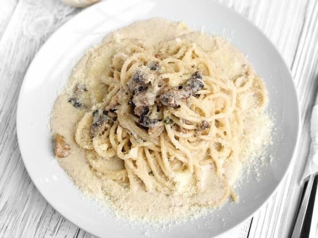 La crema le da al plato una textura y un sabor suaves. Es casi imposible estropear este aderezo. Para hacer una salsa cremosa de trufas necesitas: