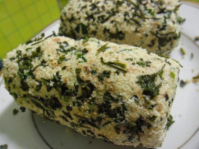 - Picar finamente la cebolla verde y el perejil. Necesitará 1-1.5 cucharadas. todo tipo de vegetación. Esta cantidad se puede disminuir o aumentar, según las preferencias de sabor. Agrega la cebolla y el perejil a la mantequilla.
