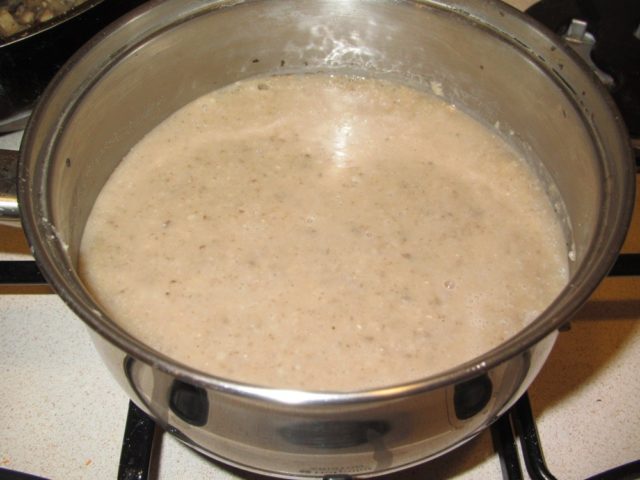 - Cuando la masa hierva, reduce el fuego al mínimo. Cocine a fuego lento hasta que espese.