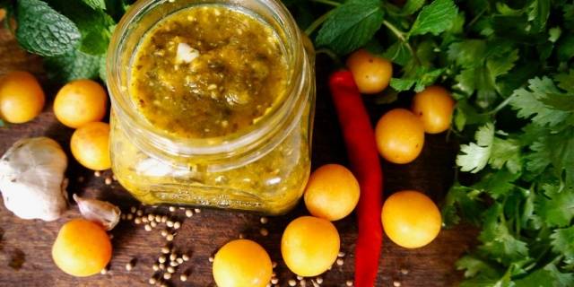 De todas las recetas de salsa, se puede distinguir el tkemali, elaborado con ciruelas amarillas. DESDELos leones deben estar agrios y no demasiado maduros, de lo contrario, el plato terminado se verá como mermelada y no como una salsa picante.