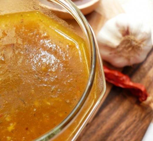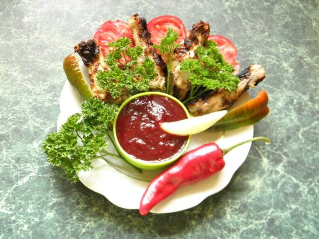 Incluso por el nombre de esta salsa picante, se puede entender que provino de la caliente Georgia. Salsa tkemali de ciruelas: un plato tradicional de la cocina georgiana, se prepara con la adición de una gran cantidad de especias, especias y hierbas. El tkemali es bueno para la salud, pero solo lo pueden comer quienes no tienen problemas de estómago, porque la salsa es bastante picante. La receta tradicional de tkemali implica el uso de ciruelas georgianas de color rojo o amarillo, su variedad también se llama tkemali. Hoy en día, las recetas para la salsa son muy diversas: en lugar de ciruelas, puede usar bayas (grosellas, grosellas o espinas), y la menta georgiana (ombalo) se reemplaza con menta común o no se agrega al plato en absoluto. El tkemali agrio con aves de corral es especialmente sabroso, pero se come con pescado y carne, agregado a la pasta o la pizza.
