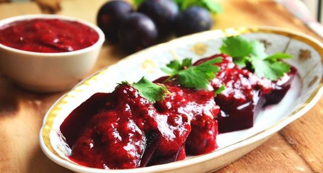 La salsa de ciruela Tkemali preparada de acuerdo con esta receta no será una pena para tratar a los invitados más exigentes. Acompañará bien con pinchos, barbacoa o jamón de pollo, así como con chuletas o albóndigas caseras.