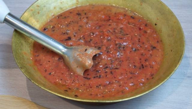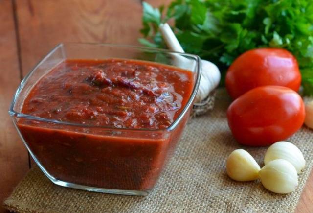 No es necesario utilizar recetas tradicionales, puede agregar tomates al plato. Resultará algo entre tkemali y kétchup, la salsa se puede comer con pasta, kebabs y otros platos caseros.