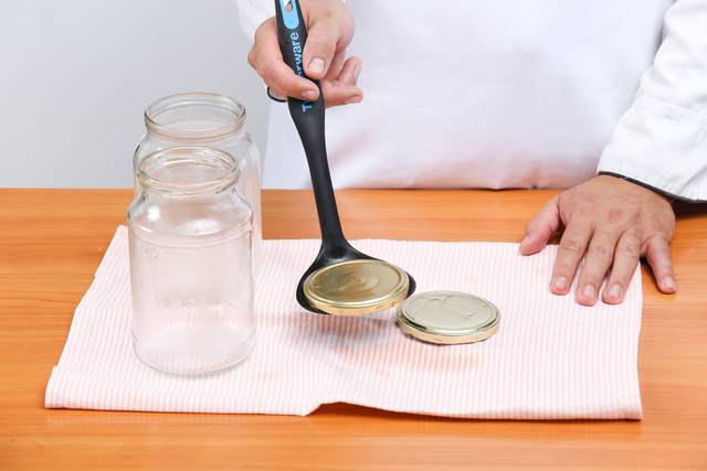 Los tapones de rosca se pueden esterilizar fácilmente en el mismo recipiente donde se esterilizan los frascos. Para las tapas metálicas, hierva durante 15 minutos. Las tapas especiales de plástico para conservas se colocan en agua hirviendo durante unos segundos, por lo que es mejor usar un recipiente separado para ellas.