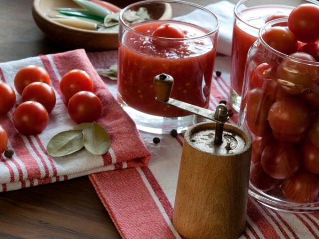 - Simultáneamente, el jugo de tomate se calienta a ebullición, se agregan sal y especias según se desee y se hierven durante 12-15 minutos.