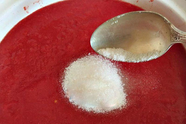 - Agregue azúcar, sal y pimienta al jugo de tomate y hierva durante otros 5-7 minutos.
