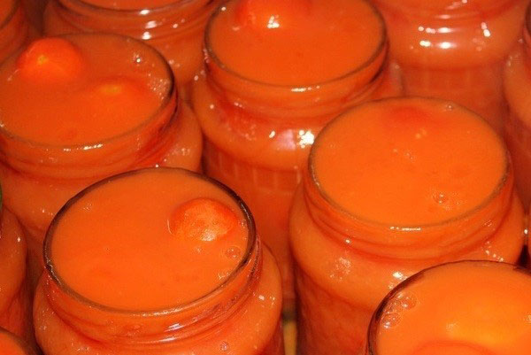También hay recetas según las cuales los tomates se hierven en su propio jugo durante un tiempo relativamente largo para garantizar su conservación confiable durante el invierno.