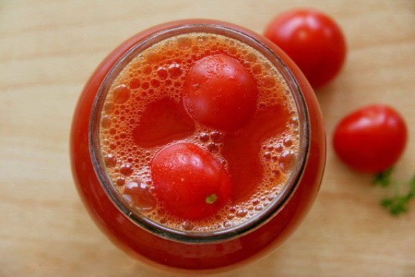 Pero los tomates mismos contienen una cantidad suficiente de ácido en la fruta, por lo que el jugo de tomate después del tratamiento térmico puede considerarse un conservante adicional. Y si usa un calentamiento adicional de verduras y solo hierve alimentos al enrollar, entonces puede hacerlo no solo sin vinagre, sino incluso sin esterilización.