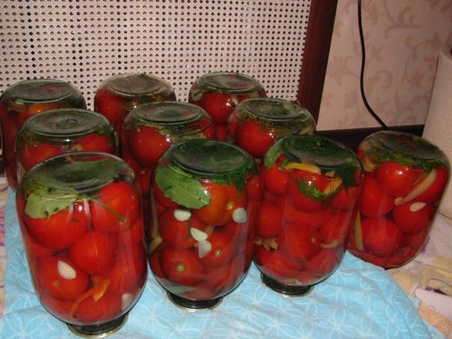 Los tomates y pimientos conservados para el invierno estarán listos para el consumo en 20 días. Pero las verduras más aromáticas y sabrosas serán 2-3 meses después de cocinarlas según una de las recetas. Se pueden almacenar en un apartamento, lejos de aparatos de calefacción o en un sótano fresco y seco.