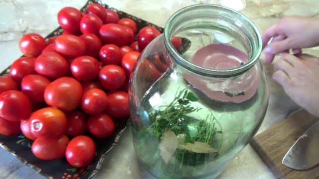 - Tomates enlatados con diversas especias: cilantro, albahaca, clavo, hierbas aromáticas y muchas otras. Si la receta prevé el uso de hierbas y una mayor esterilización, antes de enviar ramitas frescas de hierbas a los frascos, se lavan con agua corriente y se sumergen en agua hirviendo durante 2 minutos.