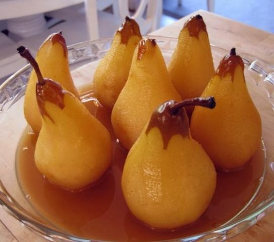 Es poco probable que los mayores de 18 años puedan resistirse a la cosecha para el invierno en forma de peras enteras flotando en almíbar de vino dulce, de acuerdo con la receta a continuación.