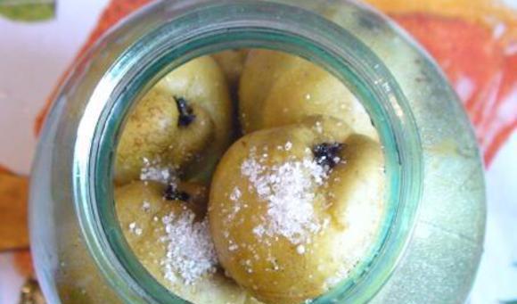 - Los trozos de peras peladas se colocan firmemente en frascos y, se inundan con agua hirviendo, se dejan durante aproximadamente un cuarto de hora.