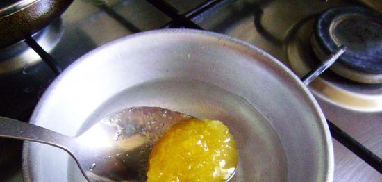 - El agua se calienta a + 80 ° C, la miel se disuelve en ella y el calentamiento se retira inmediatamente.