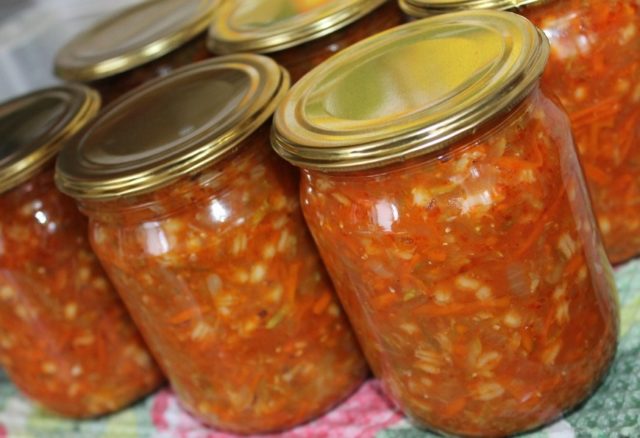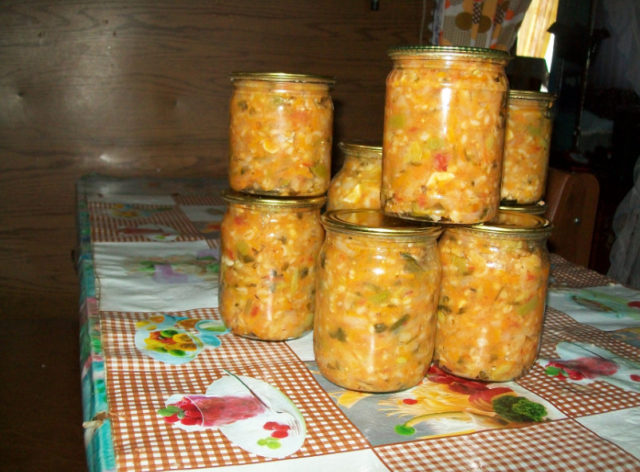 Hay muchas opciones para preparar la pieza de trabajo. Las recetas tradicionales usan encurtidos y cereales. No se recomienda agregar cebada o arroz a la conservación. Estos ingredientes afectan la vida útil del aderezo.