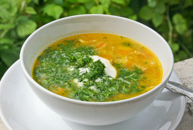 Se puede preparar una sopa apetitosa con un aderezo con la adición de pimiento. La pieza de trabajo es ligeramente dulce, gracias a lo cual el plato terminado adquiere sabores únicos.