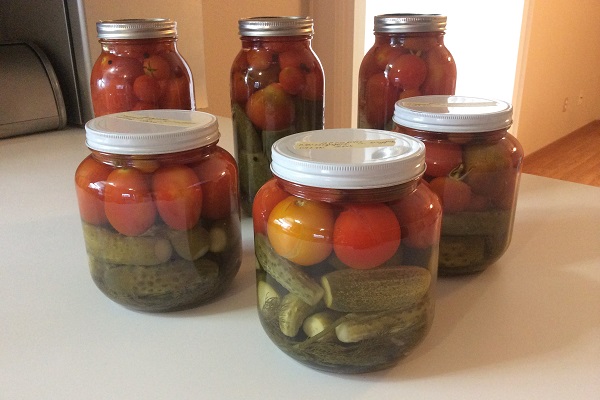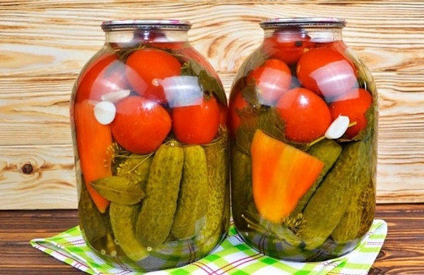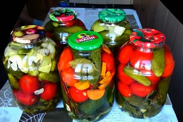 Muy a menudo, el decapado de una variedad de pepinos y tomates se realiza en frascos, ya que es conveniente. Esta salazón es una de las favoritas de las conservas. La salmuera variada se prepara con la adición de ácido cítrico para un sabor más pronunciado.