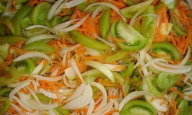 Las recetas de bocadillos con tomate verde son cada vez más populares. Por lo tanto, proponemos cocinar tomates verdes en coreano, cuya versión más deliciosa se ve así: