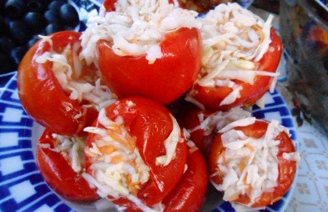 Los tomates rellenos de col se preparan siguiendo aproximadamente el mismo principio.Después de todo, el chucrut es un bocadillo favorito de muchos, y en combinación con tomates, resulta ser un verdadero manjar.