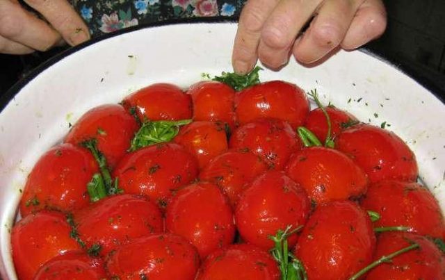 En primavera o verano, cuando ya se han comido todas las reservas para el invierno y el alma pide algo salado o picante, es hora de cocinar tomates ligeramente salados. Sin embargo, debido a que se preparan rápidamente, este aperitivo se puede realizar en cualquier época del año, ya que los tomates, así como otras verduras y hierbas se pueden encontrar en las tiendas durante todo el año.