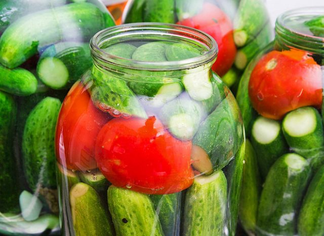 Para preparar pepinos y tomates salados rápidos, se deben verter con salmuera caliente de acuerdo con la misma receta.