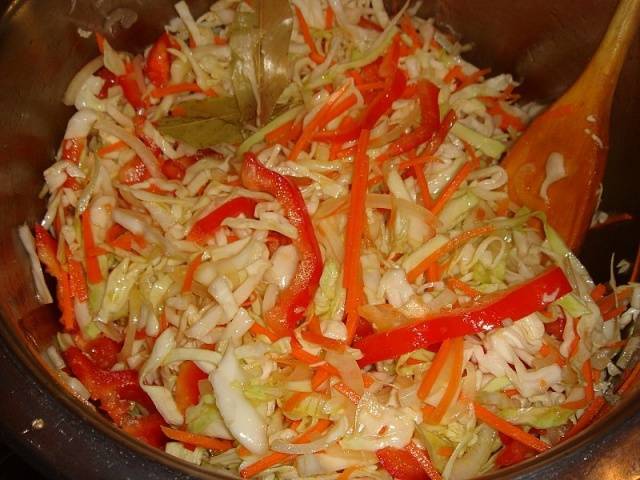 De esta forma, la col en escabeche con pimientos morrones se puede cocinar sin ajo o con la adición de más zanahorias, lo que prefiera.
