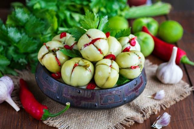 Los tomates verdes rellenos para el invierno son un aperitivo muy apetecible y aromático que puede reemplazar una ensalada, puede servir como guarnición y definitivamente decorará una mesa de invierno.