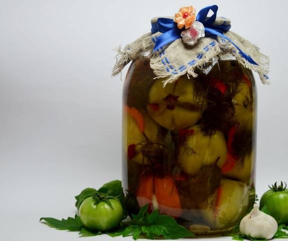Espacios en blanco de tomates verdes para el invierno son cada vez más populares, porque estos platos son picantes, moderadamente picantes, aromáticos y muy sabrosos. En el otoño, los tomates verdes se pueden encontrar en sus propios huertos o en el puesto del mercado. Si prepara tales frutas correctamente, obtendrá un excelente aperitivo, que no se avergonzará de servir en la mesa festiva. Los tomates verdes se pueden fermentar, encurtir o salar en un balde, cacerola o frascos, se utilizan para preparar ensaladas de invierno y relleno.