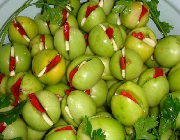 Para cocinar tomates verdes rellenos para el invierno, debe tomar:
