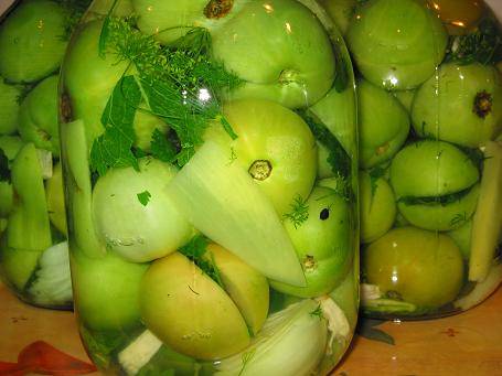 Los tomates verdes son muy sabrosos incluso sin esterilización. Para cocinar, debes tomar: