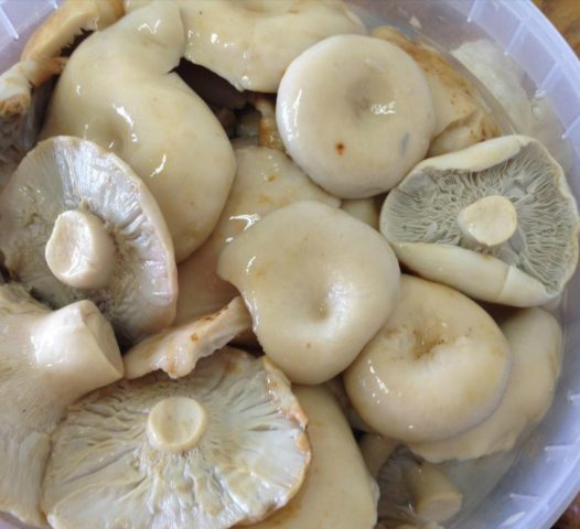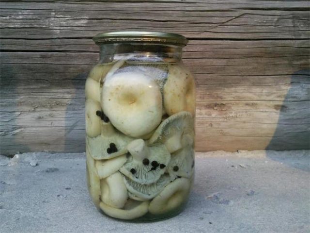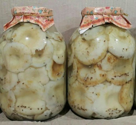 Las setas de leche se encurten en frascos de 3 litros durante 2 semanas.