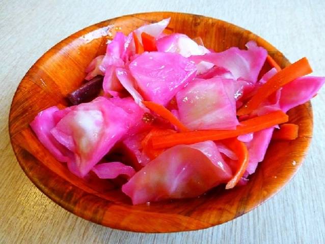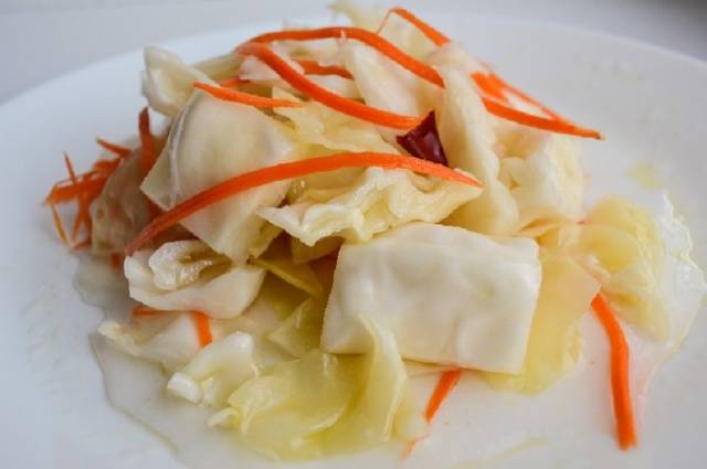 Las preparaciones de repollo siempre ayudan. Si desea un repollo crujiente, jugoso y un poco picante, entonces elegir una receta instantánea no será difícil. El mas popular es repollo en vinagre... Este método permite a las amas de casa no perder mucho tiempo y conservar todas las cualidades útiles del repollo. Al encurtir, un momento obligatorio es la preparación de la marinada, que se vierte o aromatiza con repollo. El sabor del plato resultante depende de su composición y del conjunto de componentes que lo acompañan. Pero si una verdura en escabeche tiene un nombre en coreano, entonces hay muchas veces más fanáticos de ese bocadillo. La ventaja de los platos preparados de acuerdo con esta receta es la capacidad de regular el grado de picor, picante y dulzor. Por lo tanto en escabeche repollo coreano se adapta a casi todo el mundo. Incluso si cambia las proporciones recomendadas, seguirá siendo delicioso. Y lo más importante, rápido.