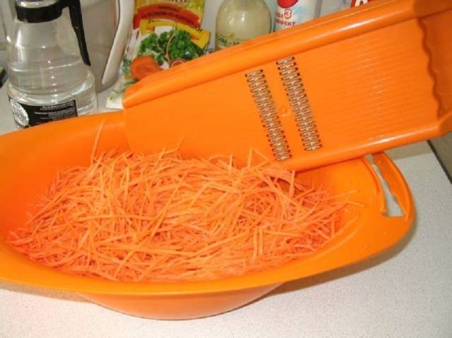 Los componentes adicionales son zanahorias ralladas y remolacha para ensaladas coreanas. Pero también puedes usar un rallador de cocina normal.
