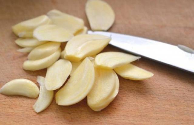 - Pero el corte de ajo es diferente, debes obtener rodajas finas.