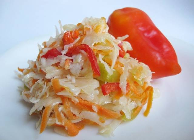 Para 2 kg de repollo picado, necesitará 2 zanahorias, 1 pimiento grande y un pepino.
