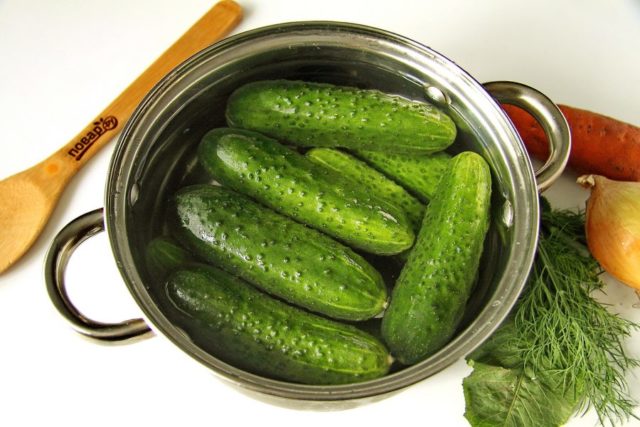 - Lave los pepinos y déjelos en remojo durante 5 horas.