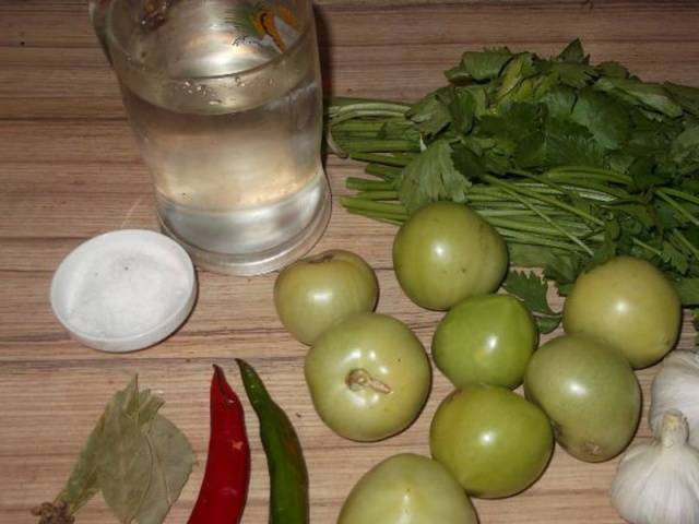 Manteniendo las proporciones, puede hacer tomates verdes en escabeche para 2-3 porciones a la vez.