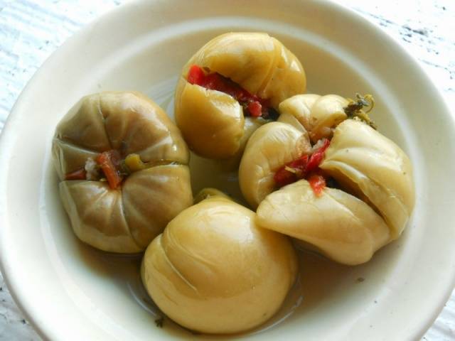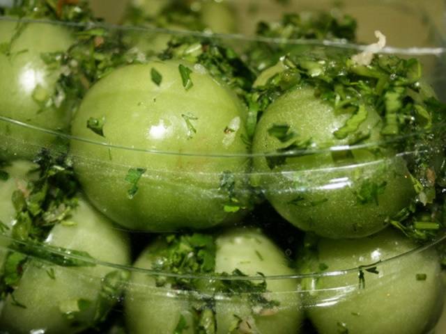 Tres días después, los tomates verdes en escabeche instantáneos (con foto) están listos.