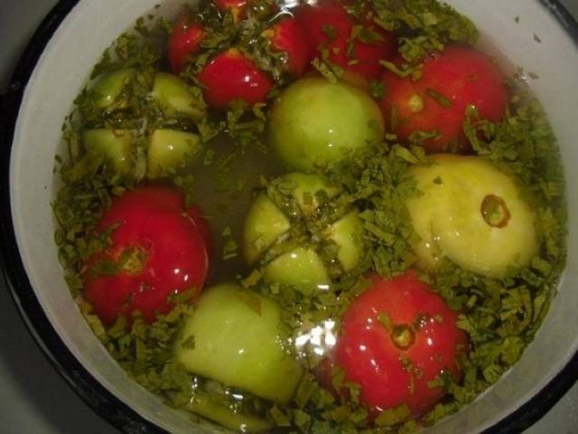 En otoño, cuando el sol no brilla durante tanto tiempo, y los frutos no tienen tiempo. madurar, algunas amas de casa practican abastecerse de encurtidos de tomates verdes. A continuación se presentarán varias formas de cocinar. tomates verdes en escabeche Comida rápida. Por supuesto, difieren significativamente en sabor de los tomates rojos maduros, pero, sin embargo, un bocadillo picante de ellos no es de ninguna manera inferior. No solo puede preparar encurtidos para el invierno, sino también disfrutarlos un día después de la masa madre.