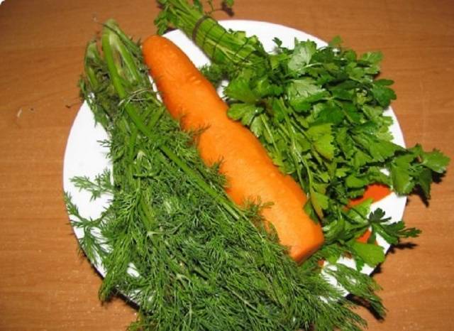 - 1 manojo de verduras tradicionales: perejil y eneldo.