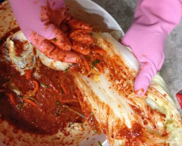Preparado de esta manera y completamente relleno con salmuera. repollo coreano para el invierno se puede almacenar hasta primavera.