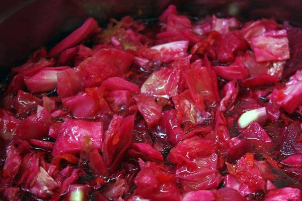 Es importante mantener solo las proporciones exactas del contenido de repollo y remolacha, se toman 1,5 kg de remolacha por 3 kg de repollo. Puede permitirse experimentar con el resto de verduras y hierbas, pero según la receta, su composición debe ser la siguiente: