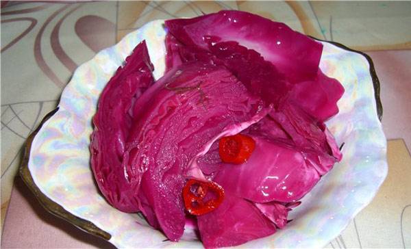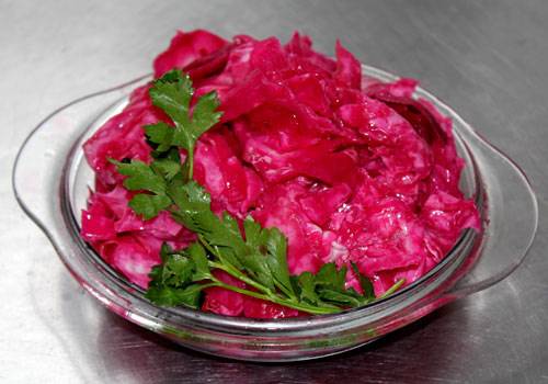Por supuesto, en el repollo preparado según la receta anterior, todas las vitaminas y otras sustancias útiles que se encuentran en las verduras y hierbas utilizadas para el decapado se conservan e incluso se multiplican al máximo. Pero a veces hay situaciones en las que es necesario cocinar rápidamente repollo georgiano con remolacha y luego la receta a continuación viene al rescate.