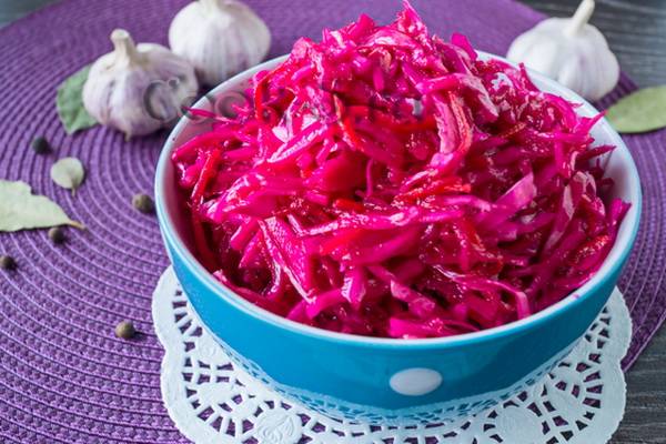 Existen muchas recetas rápidas de repollo en escabeche con remolacha, pero entre ellas se encuentran las que se preparan en apenas unas horas y las llamadas recetas diarias. La diferencia entre los dos está principalmente en la forma en que las cabezas de repollo y otras verduras se cortan en las recetas. Para una producción ultrarrápida de repollo en escabeche con remolacha, las cabezas de repollo generalmente se cortan en trozos estrechos o en rodajas finas de no más de 4x4 cm de tamaño. Las zanahorias y remolachas se rallan más convenientemente.