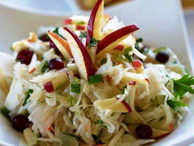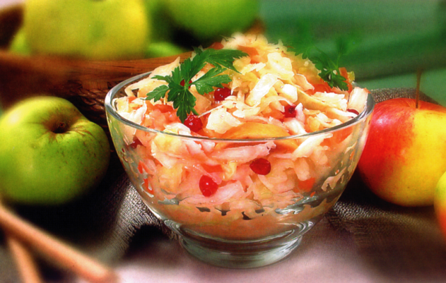 Se obtiene un delicioso repollo en escabeche cuando se usa en una receta de manzana. Es aconsejable elegir manzanas de variedades tardías con alta densidad.