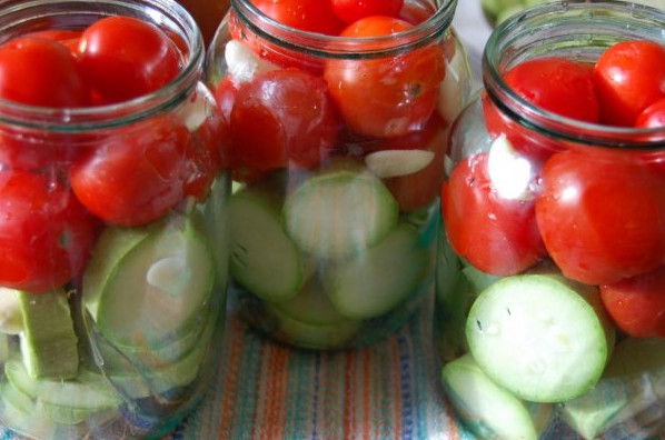 Tomates y pepinos en escabeche