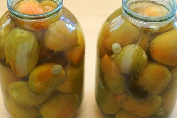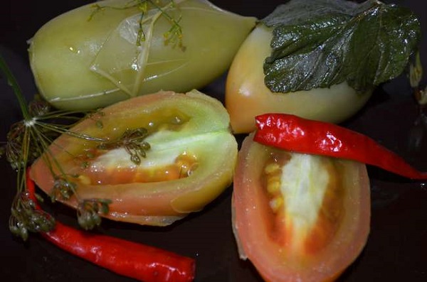 Estas verduras son excelentes para crear rizos. Se pueden cubrir tanto enteros como en trozos, mezclados con otras verduras, hierbas y especias. Hay muchas recetas diferentes de tomates marrones en escabeche, que difieren en la cantidad de especias, hierbas y otros ingredientes.