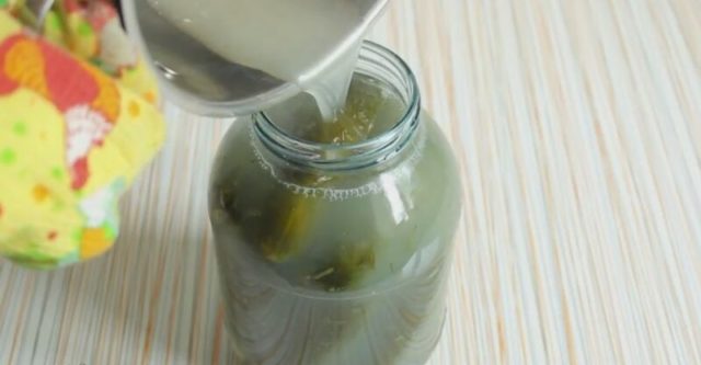 - Prepare salmuera con agua, azúcar, ácido cítrico, sal. Vierta los pepinos durante 5 minutos.
