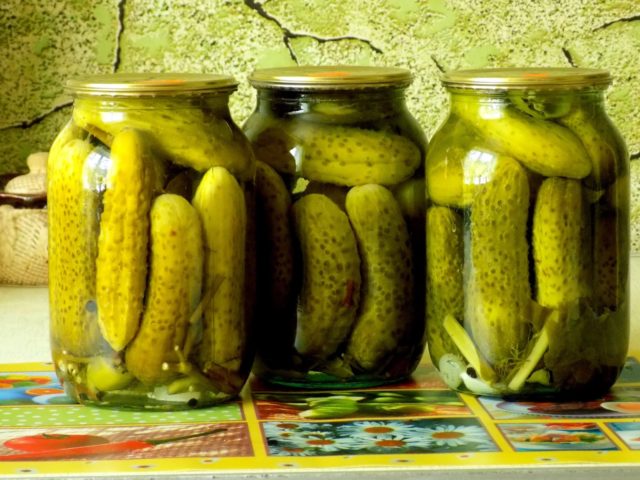 Puede marinar pepinos dulces en frascos de 1 litro al estilo búlgaro para el invierno sin cebollas.